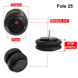 O kit com duas Bolsas de Fole 25 Blindada com 2 Gomos é ideal para quem busca robustez, durabilidade e desempenho elevado em sistemas de suspensão a ar.